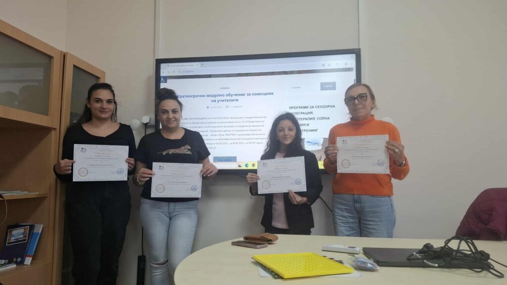 През седмицата от 06.10 – 10.10. 2025г. в Регионален център за подкрепа на процеса на приобщаващото образование – Русе, Антоанета Друмева – логопед и Весела Стойчева – рехабилитатор на слуха и говора, проведоха обучението за помощник на учителите в гр. Русе и областта.